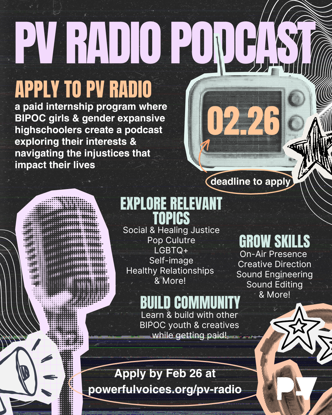 Podcast + Creative space where girls and gender expansive teens talk about and navigate interests and injustices that impact their lives.